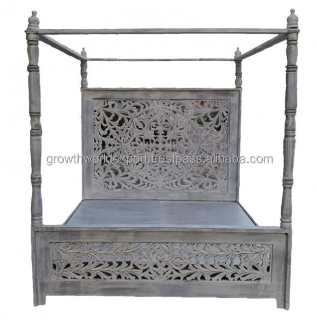 Nombre del producto:Talla de madera cama king size con 4 panel