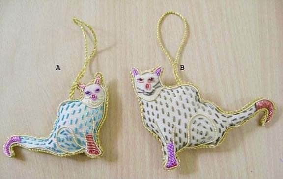 Adornos Navideños Bordados con Cuentas y Diseño de Cara de Gato en Color Blanco para Decoración de Árboles de Navidad, Festivales y Fiestas