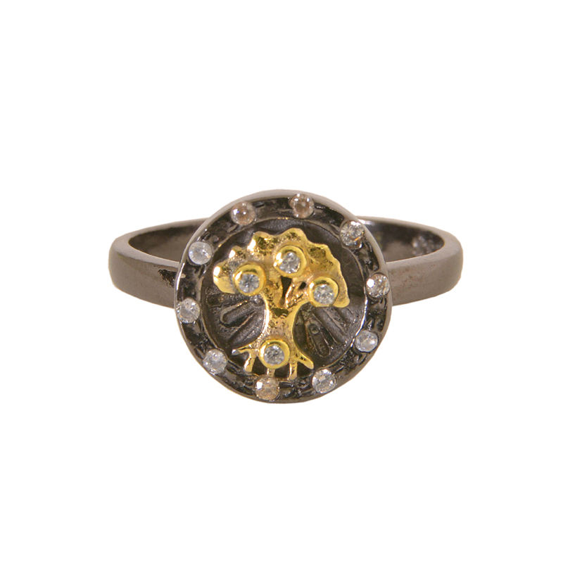 Última colección 18K chapado en oro 925 anillo de bodas de plata esterlina piedra preciosa de circón natural rodio negro árbol vida joyería fina