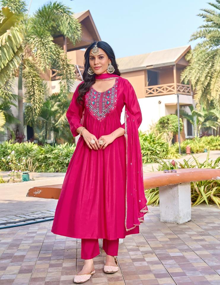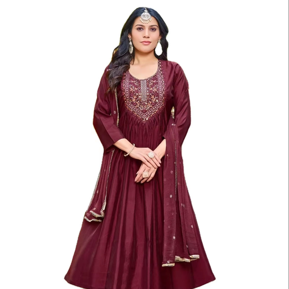 Última colección Viscos bordados pesados seda romana Salwar Kameez para adultos ropa de fiesta Kurtis con Chinon Sequence Work