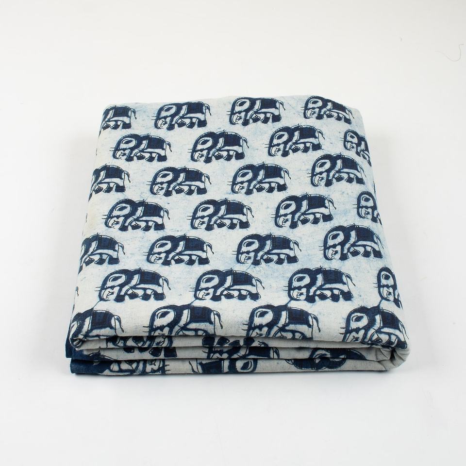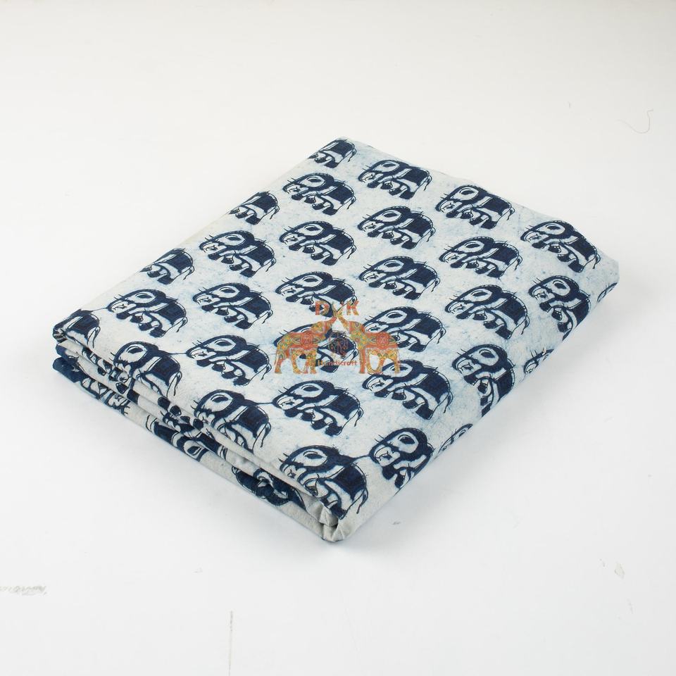Última Colección de Tela de Algodón Pura Estampada a Mano con Elefantes en Técnica Indigo para Coser, Acolchar y Manualidades