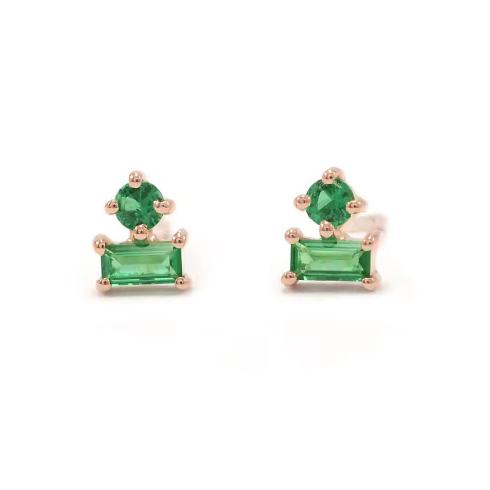 Última colección de pendientes de oro de 14 quilates, Mini tachuelas, ajuste de bisel, Baguette minimalista hecho a mano, Zambia, Esmeralda, piedras preciosas, regalos para fiestas