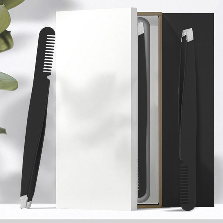 Herramientas de belleza personalizadas, últimas pinzas para cejas de acero inoxidable con punta inclinada y peine