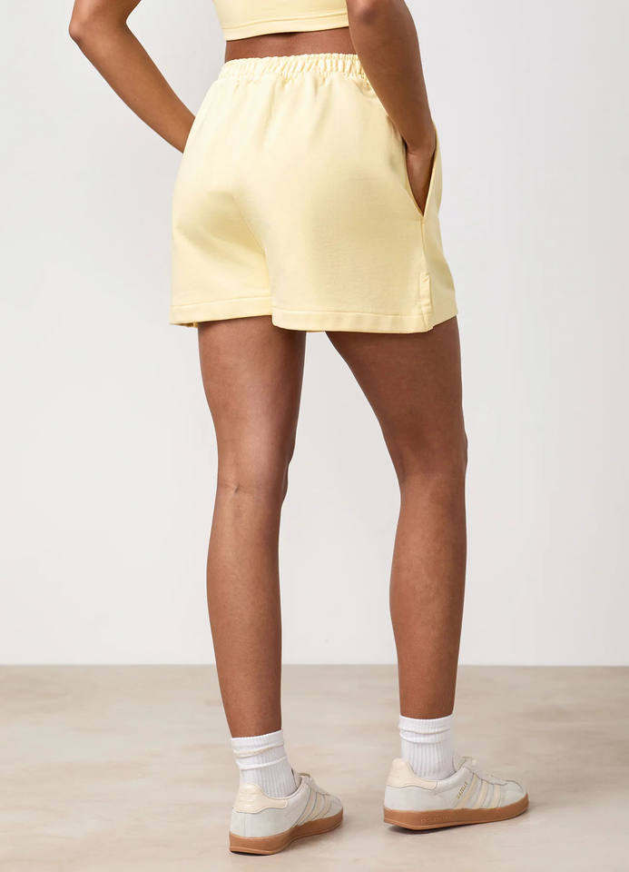 Shorts Deportivos para Mujer, Diseño Personalizado con Logotipo, Color Amarillo Mantequilla, Cintura Elástica Corta, Algodón Transpirable, para Gimnasio y Running