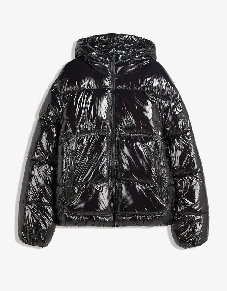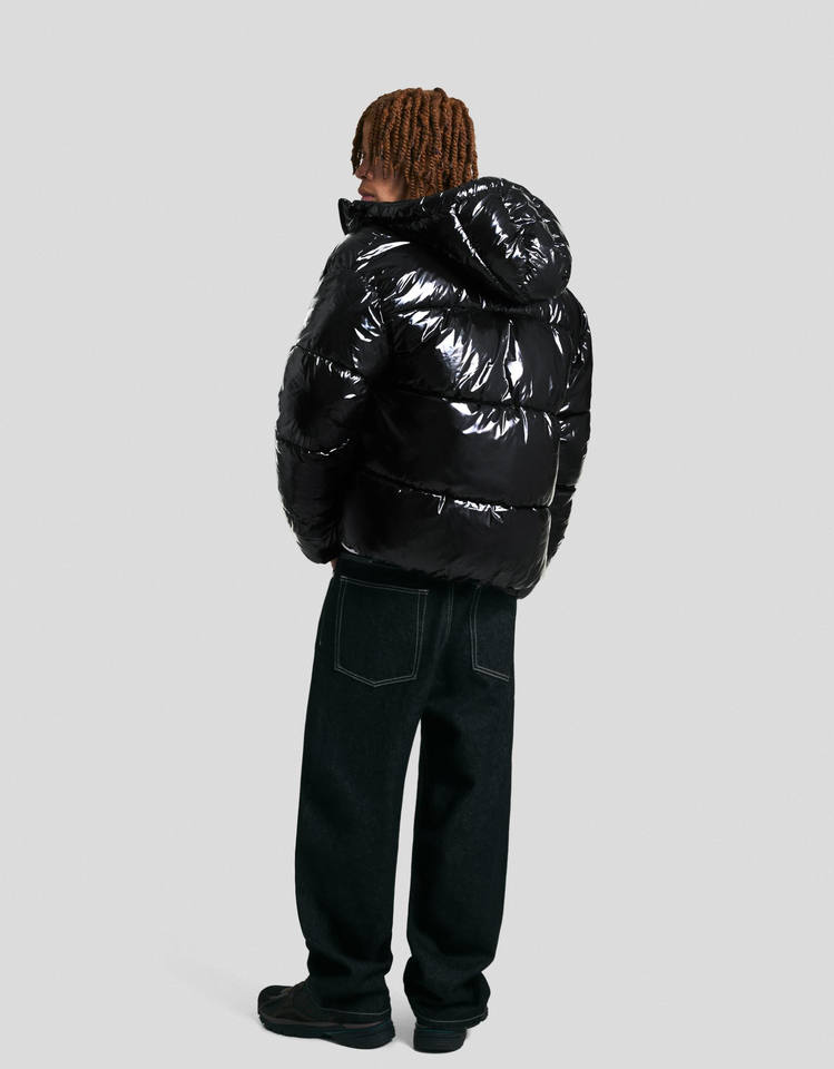 Chaqueta acolchada con capucha brillante para hombre con logotipo de diseño personalizado, chaqueta cortavientos ligera de poliamida 100%, chaqueta de burbujas para exteriores de invierno