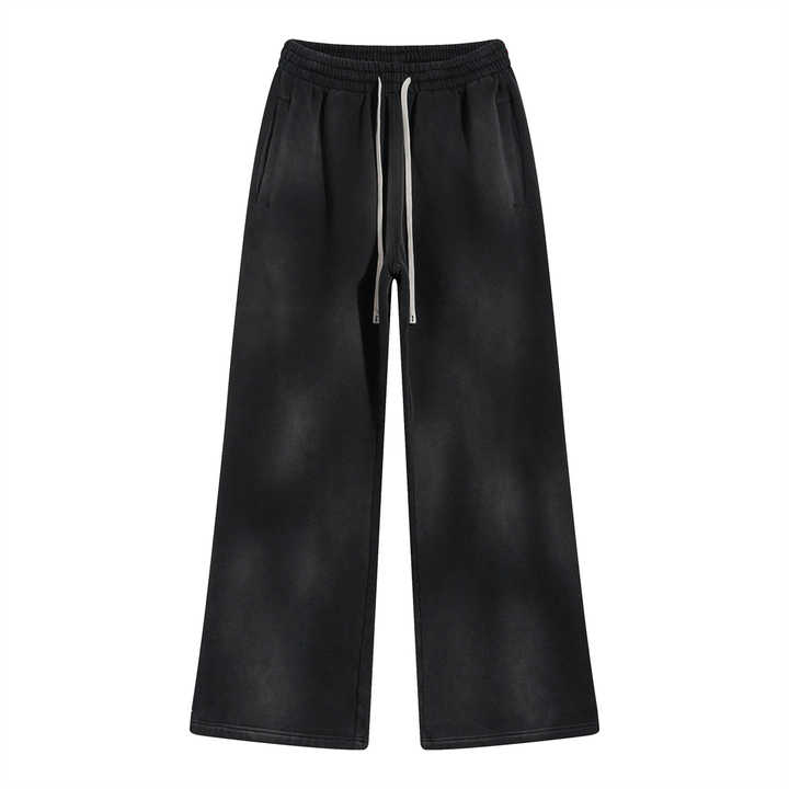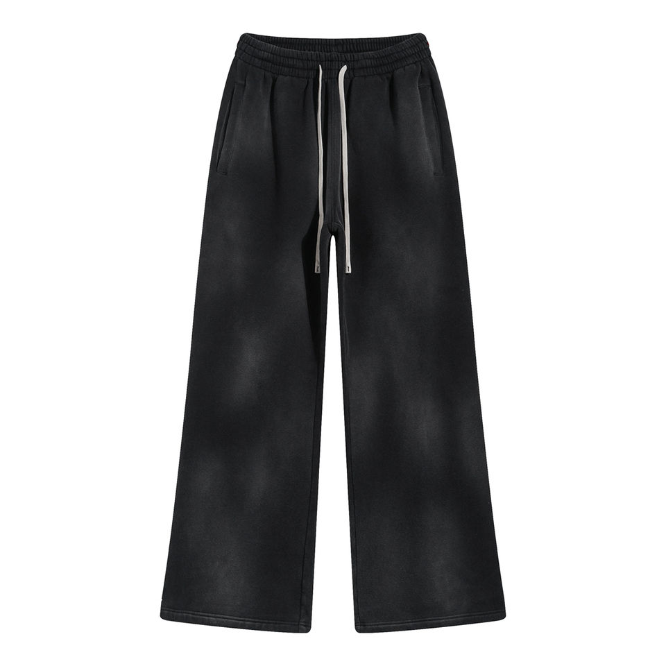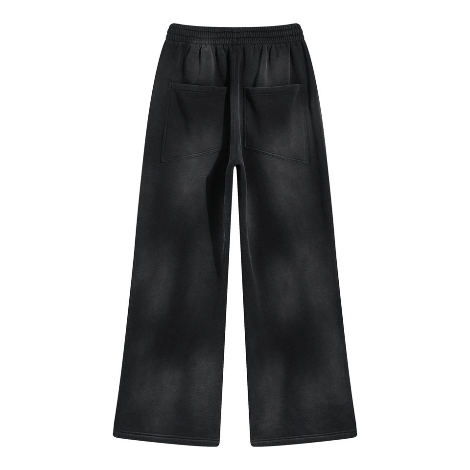Últimos pantalones de chándal de pierna ancha lavados con ácido para hombres con logotipo personalizado apilado de gran tamaño pierna recta holgada en blanco de talla grande de punto plano