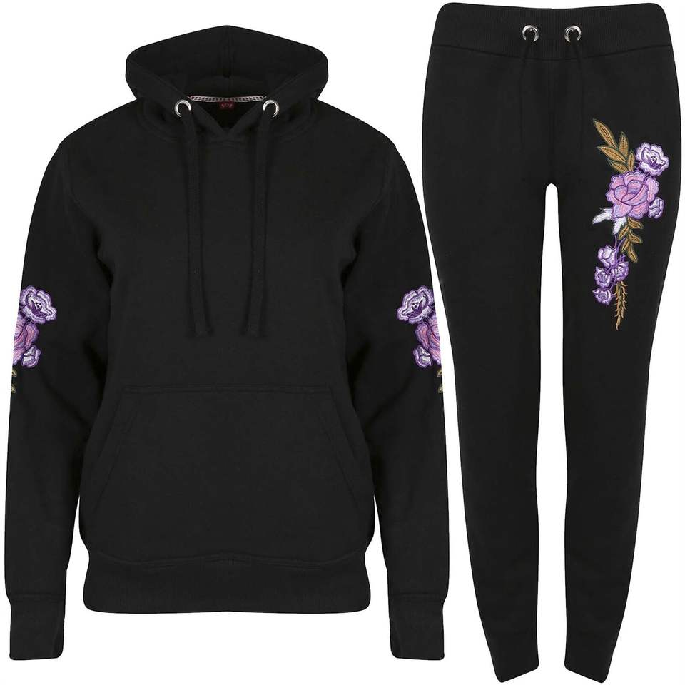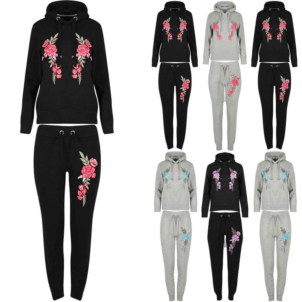 Último diseño personalizado para mujer Floral Rosa bordado Sudadera con capucha camisetas gimnasio chándal