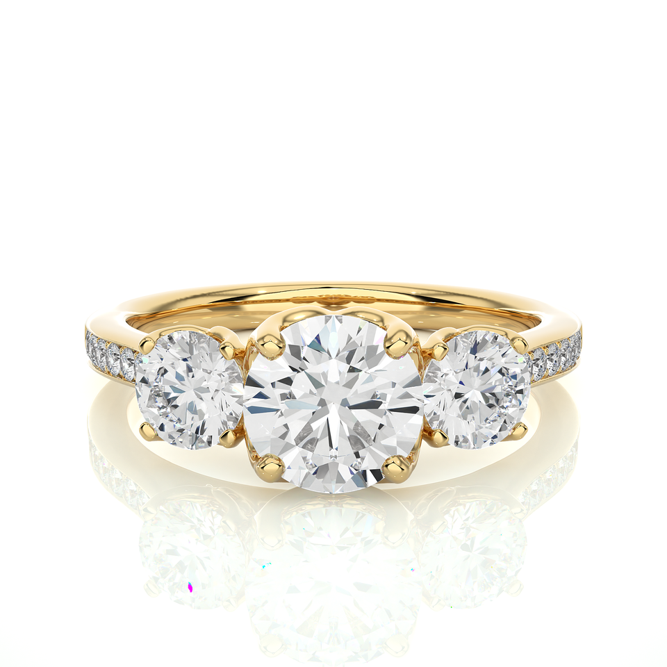 Último diseño, anillo de compromiso de tres piedras de oro amarillo de 14 quilates, corte redondo, Diamante cultivado en laboratorio de media eternidad en pavé, regalo de aniversario