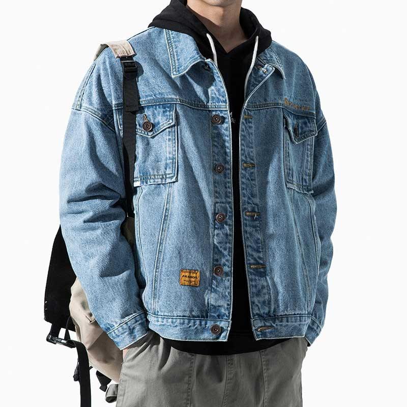 Último diseño 2025, chaqueta vaquera Vintage de diseño personalizado para hombre, estilo elegante, transpirable, tela pesada lavada con piedra para exteriores