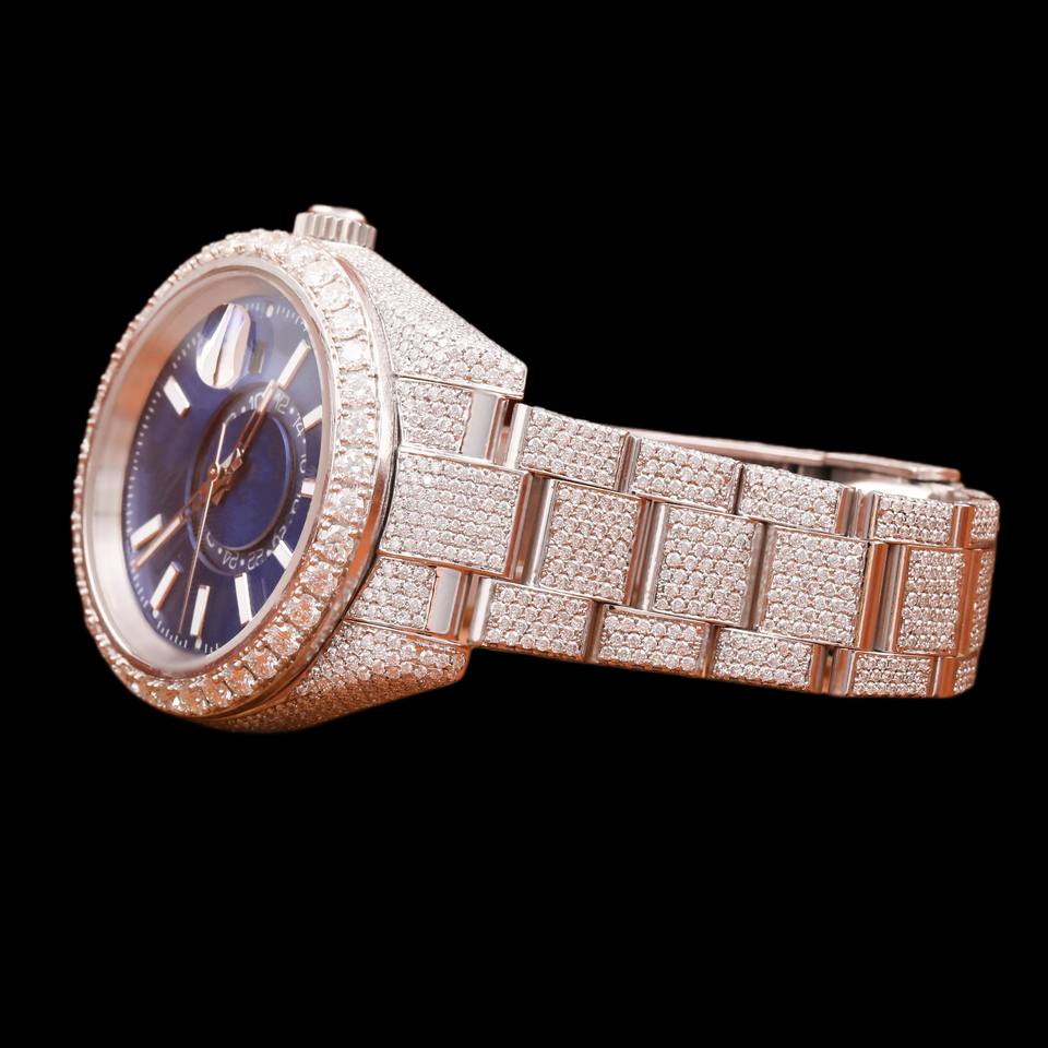 Reloj de Pulsera de Cuarzo para Hombre, Diseño Moderno, Color Azul, Esfera Redonda, Diamantes Moissanite, Estilo Hip Hop, Lujoso