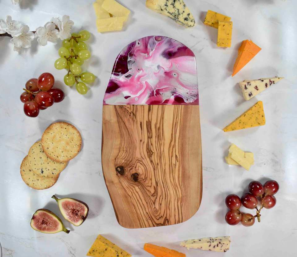 Latest Design Blue Resin Cheese Board in Wood with Natural Finished Perfect for Kitchenware Hotel Ware and Wedding Accessory