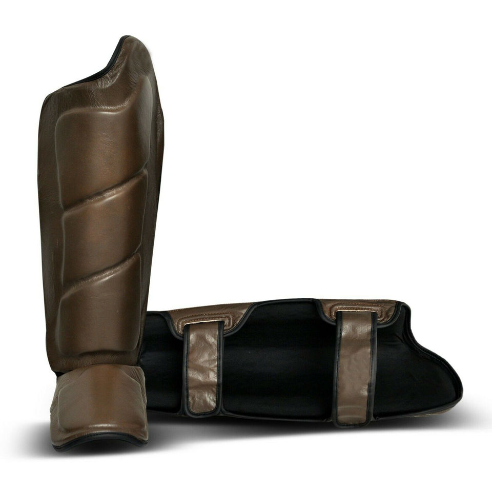 Espinilleras de boxeo de último diseño, piel de vaca, deportes de lucha, protectores de pierna y empeine
