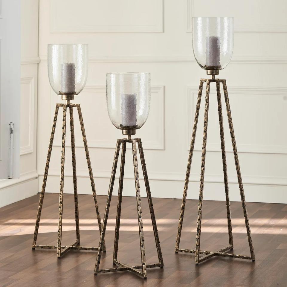 Último diseño de latón hecho de metal chapado en oro huracán/candelabro decorativo en venta al por mayor uso de decoración del hogar/Hotel