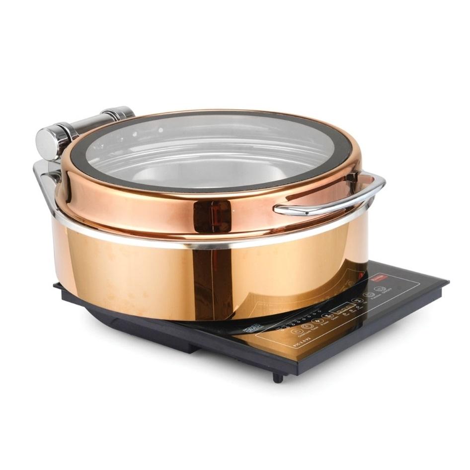 Último diseño Buffet para servir platos de frotamiento Almacenamiento de alimentos Forma redondeada Calentador de alimentos Plato de frotamiento para servir
