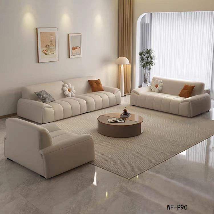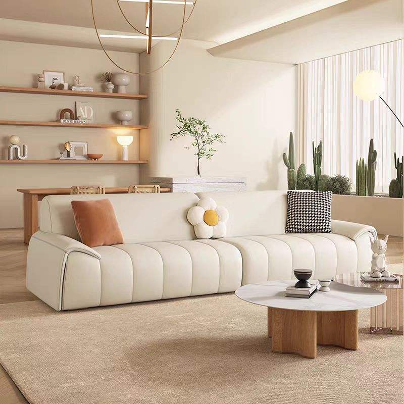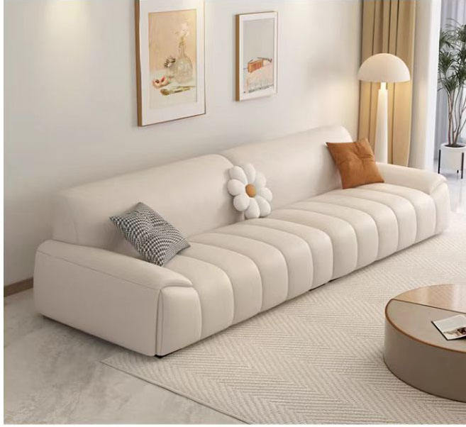 Último diseño barato moderno pequeño salón crema estilo recto cuero genuino Color crema diseño elegante sofá francés