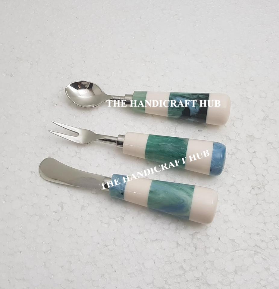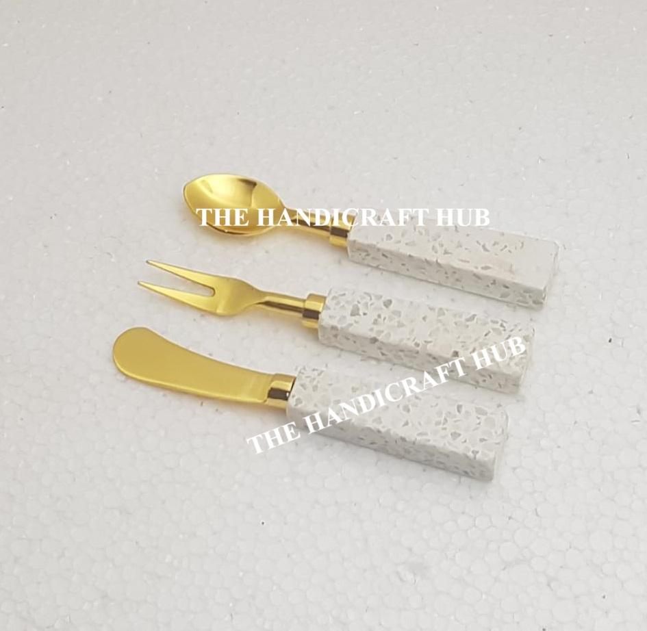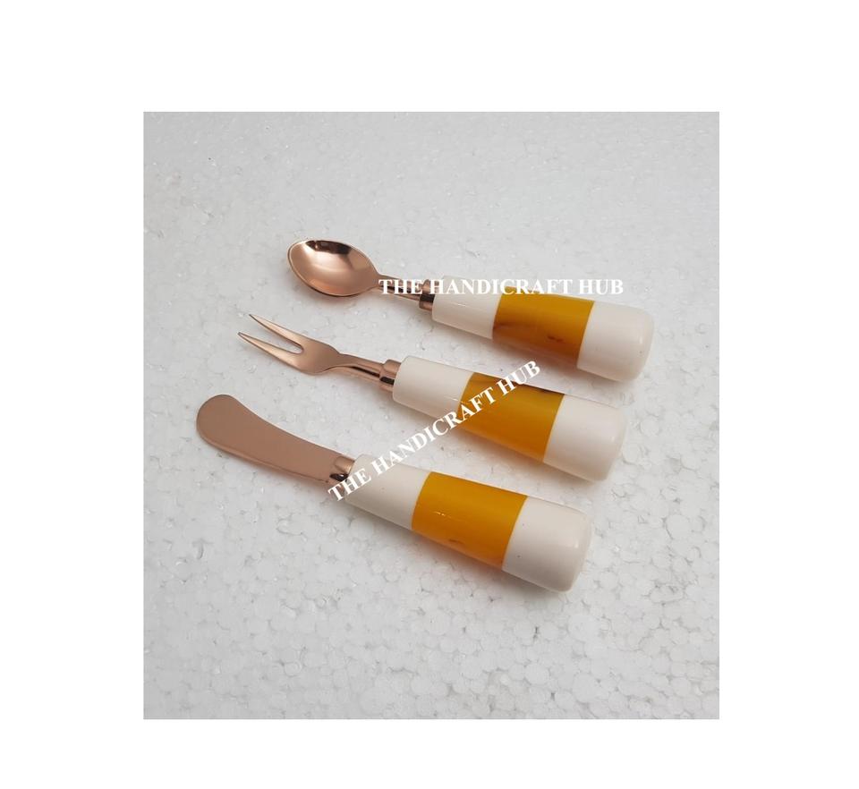 Juego de utensilios de cocina para queso de último diseño, juego de cubiertos de acero inoxidable con mango de resina de madera a un precio mayorista muy bajo.
