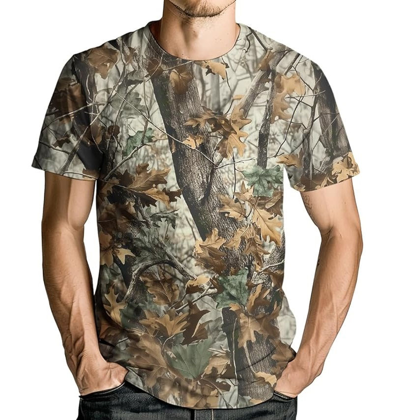 Camisetas de Camuflaje de Manga Corta con Diseño Moderno y Corte Cuadrado, para Caza, Senderismo y Pesca, con Estampado de Árbol Real