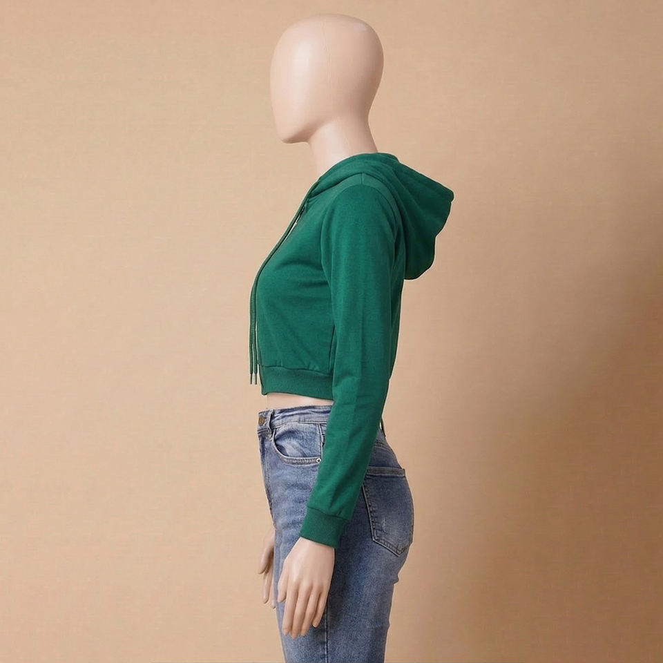 Sudadera con Capucha Corta de Diseño Moderno para Invierno, con Logotipo Personalizado Bordado, para Mujer, 100% Algodón Felpa