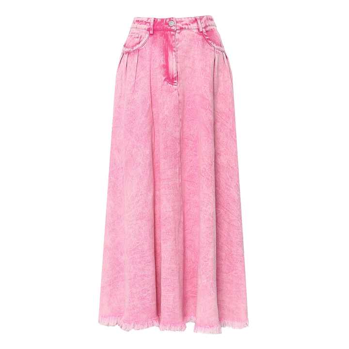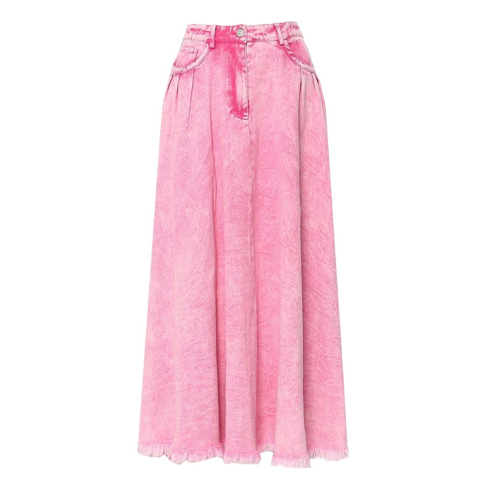 Último Diseño, Falda Vaquera Informal Vintage con Logotipo Personalizado, Color Rosa, Falda Larga de Mezclilla para Mujer