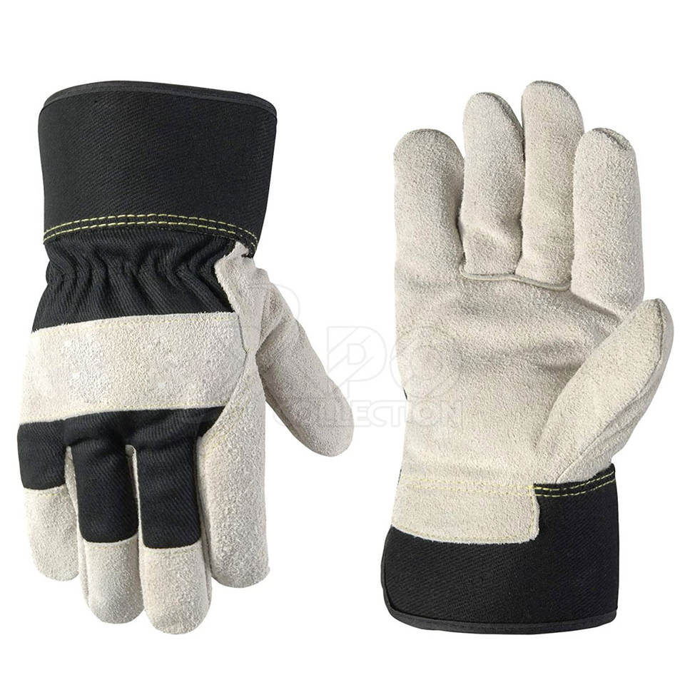 Guantes de seguridad con logotipo personalizado de último diseño para adultos, guantes de seguridad de trabajo de doble palma de cuero dividido de alta resistencia