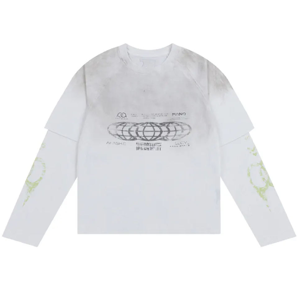 Último diseño Logotipo personalizado Lavado con ácido Doble capa Manga larga Diseño de moda Hombres Camiseta de gran tamaño