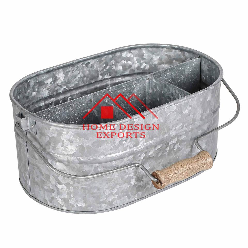 Último diseño decorativo de Metal galvanizado granja cubiertos utensilios rústicos Caddy para interior al aire libre almacenamiento fiesta cubiertos