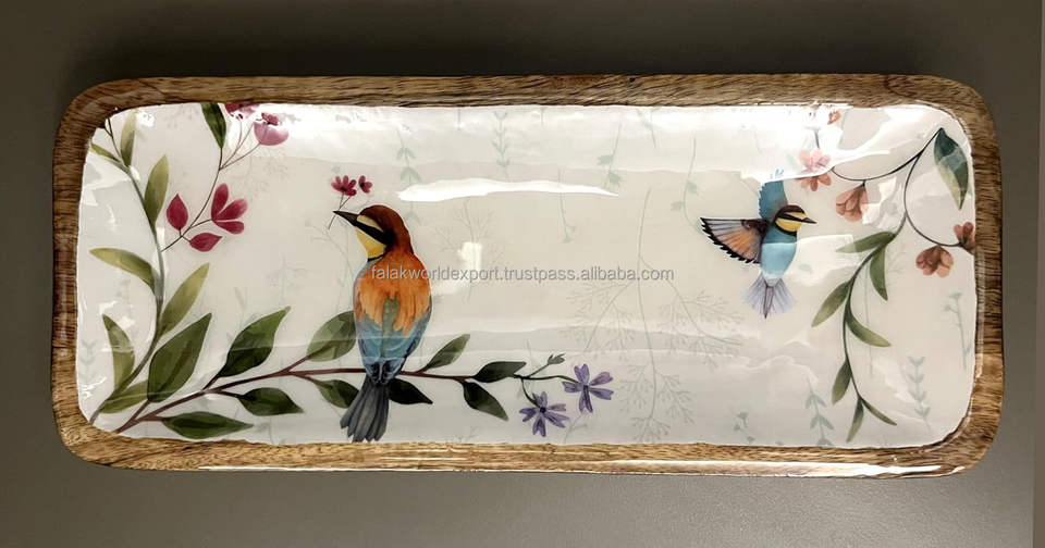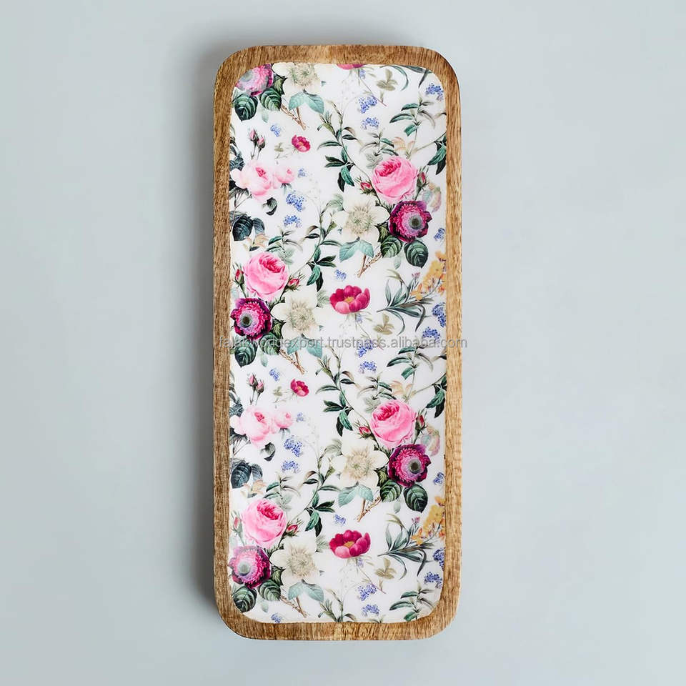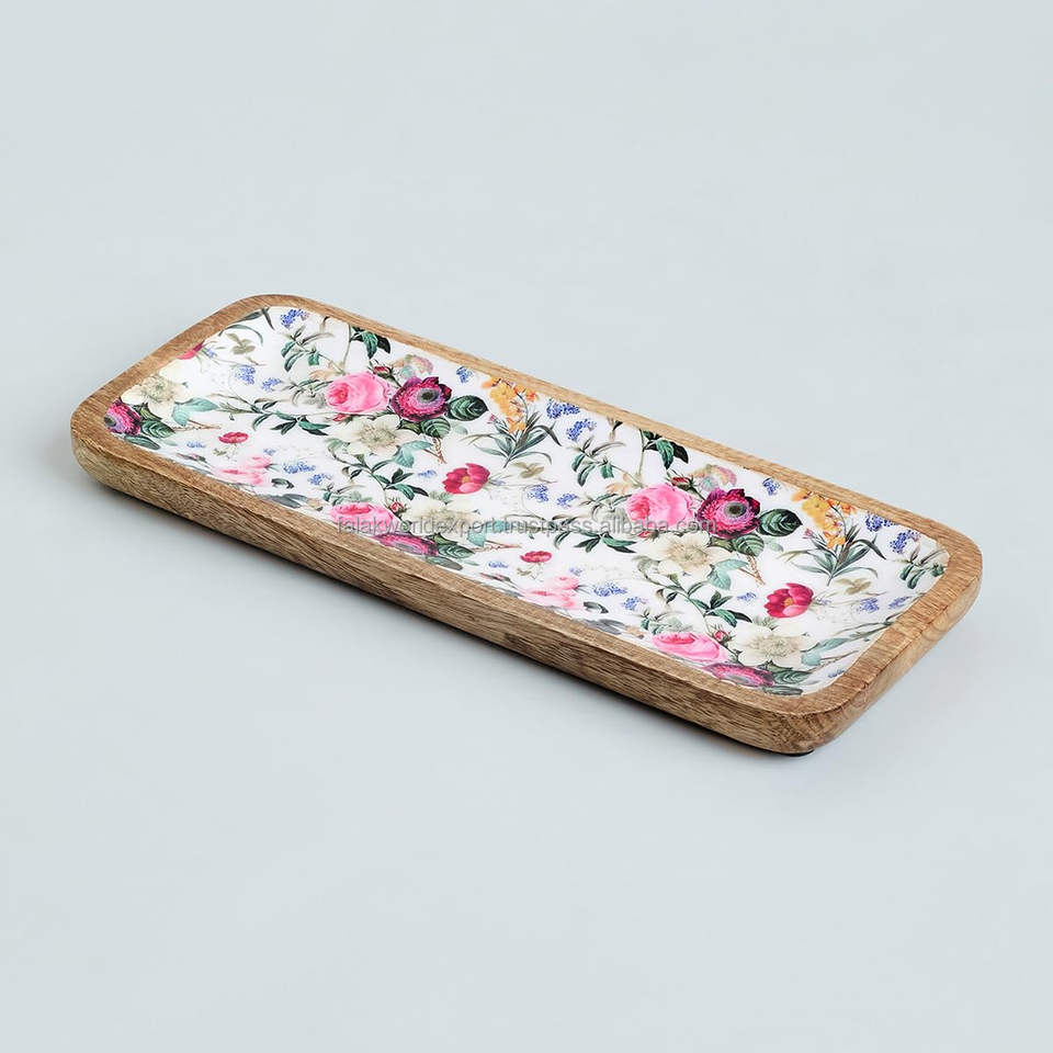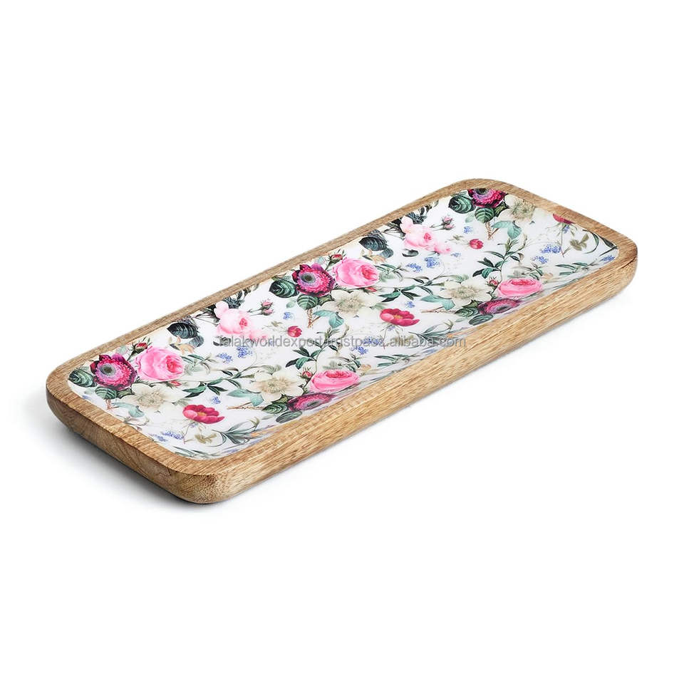 Último diseño, bandeja de servicio de madera impresa en MDF ecológica, forma cuadrada para bandeja de cocina casera de Falak World Export