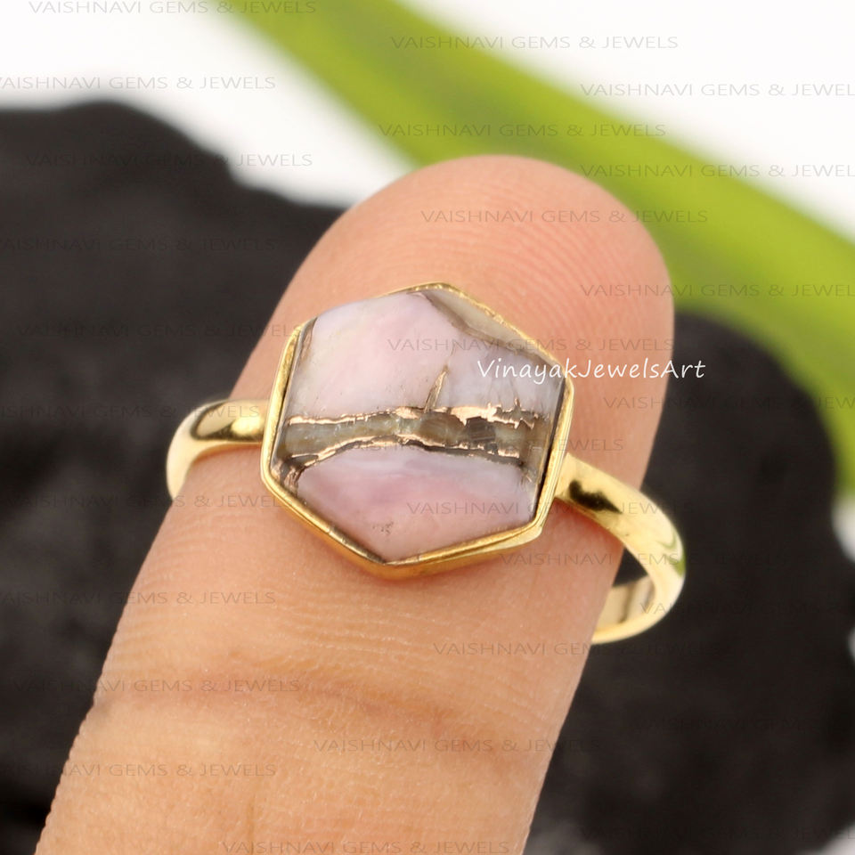 Último diseño Cobre fino Plata de Ley 925 Oro de 18 quilates Rodio Eternity Vermeil Dainty 10x14mm Hexágono Anillo de ópalo Rosa Fiestas