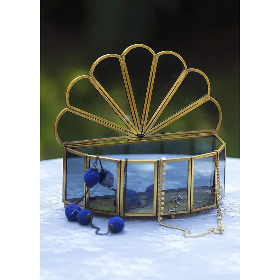 Estuche de Joyería de Vidrio de Último Diseño con Marco de Metal Dorado, Rectangular, Vintage, para Guardar y Exhibir Aretes, Collares y Accesorios