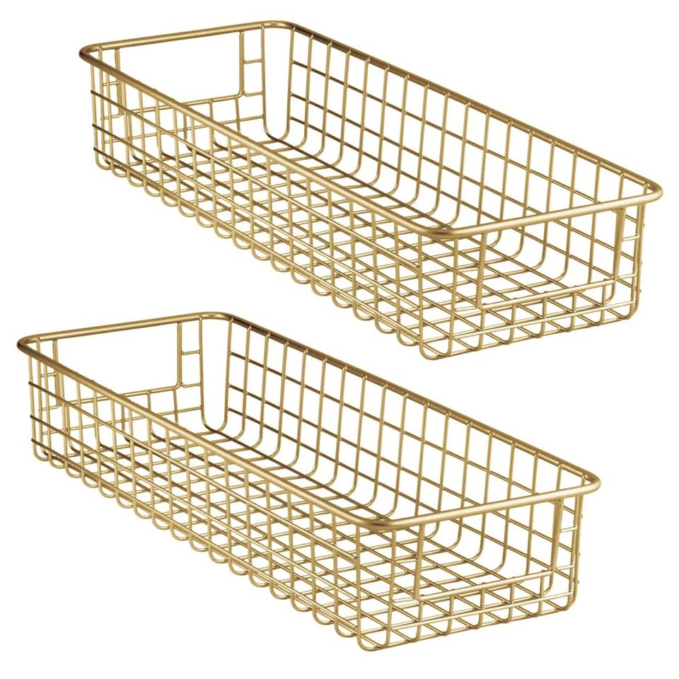 Cesta de almacenamiento de alambre de metal chapado en oro de último diseño para utensilios de cocina y Hogar y juego de cesta de almacenamiento de cubiertos