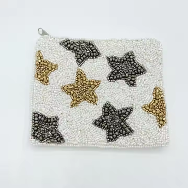 Bolso de mano de último diseño con cuentas de semillas bordadas, monedero hecho a mano con color personalizado para mujeres y niñas