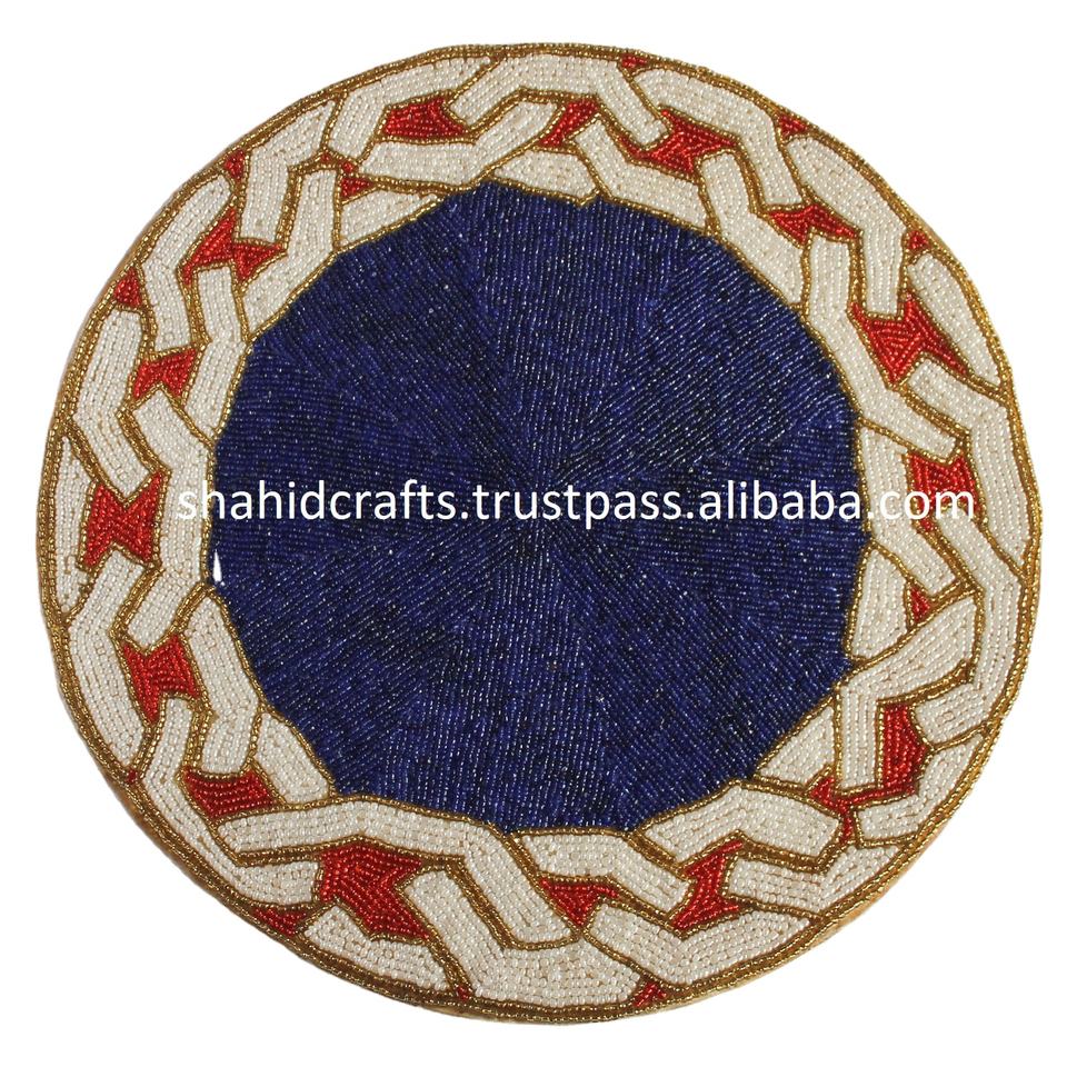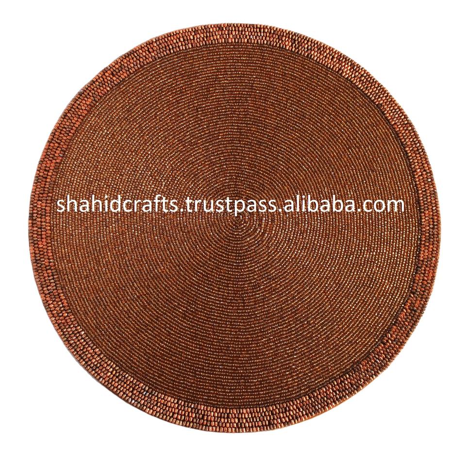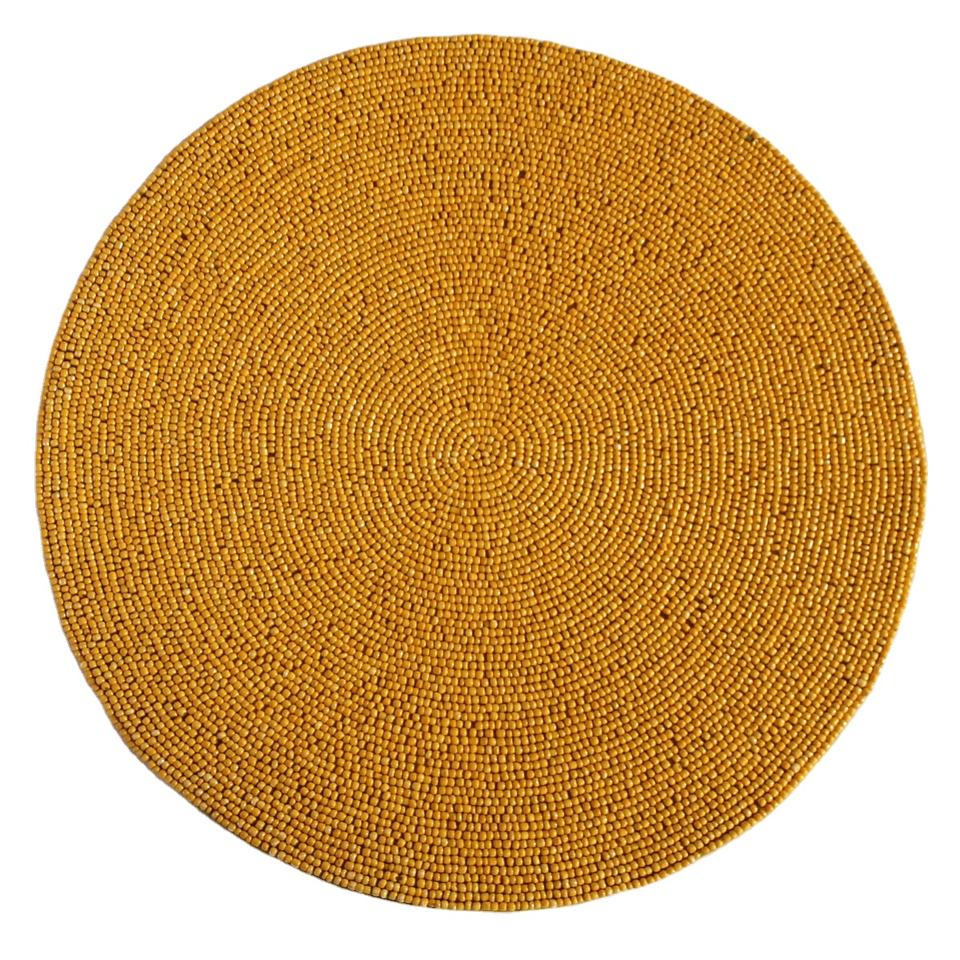 Mantel Individual Redondo Clásico de Cuentas de Vidrio Hecho a Mano, Diseño de Última Moda, Color Amarillo, 15 Pulgadas, para Uso en el Hogar y Restaurantes