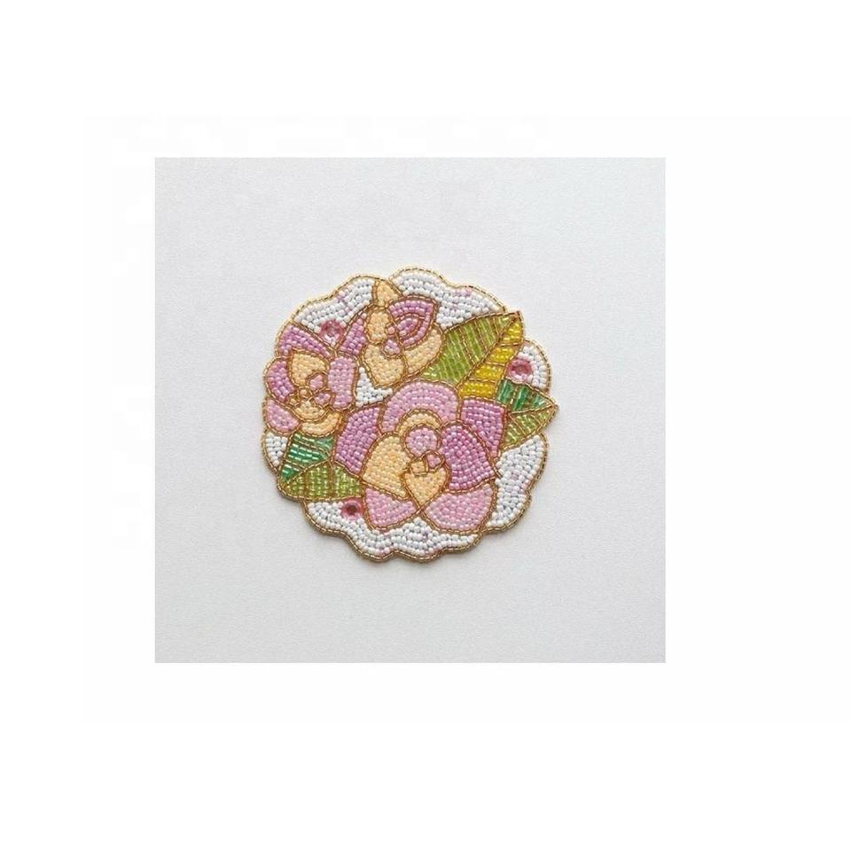 Posavasos con cuentas de cristal de flores hechas a mano de último diseño, posavasos decorativo moderno para mesa de centro a precio al por mayor