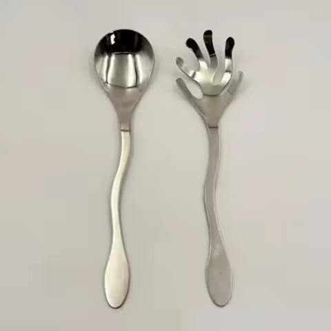 Cucharas para Servir Ensaladas Hechas a Mano con Diseño Moderno, Mango de Acero Inoxidable, Calidad Premium, Aptas para Lavavajillas