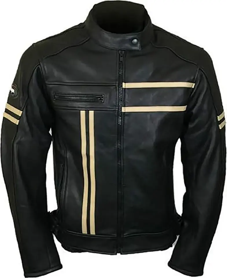 Chaqueta de cuero de piel de vaca para hombre de último diseño con cuello levantado Chaqueta de cuero para hombre
