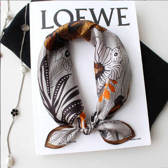 Pañuelo de satén estampado seda imitación pelo seda patrón cadena lujo último diseño