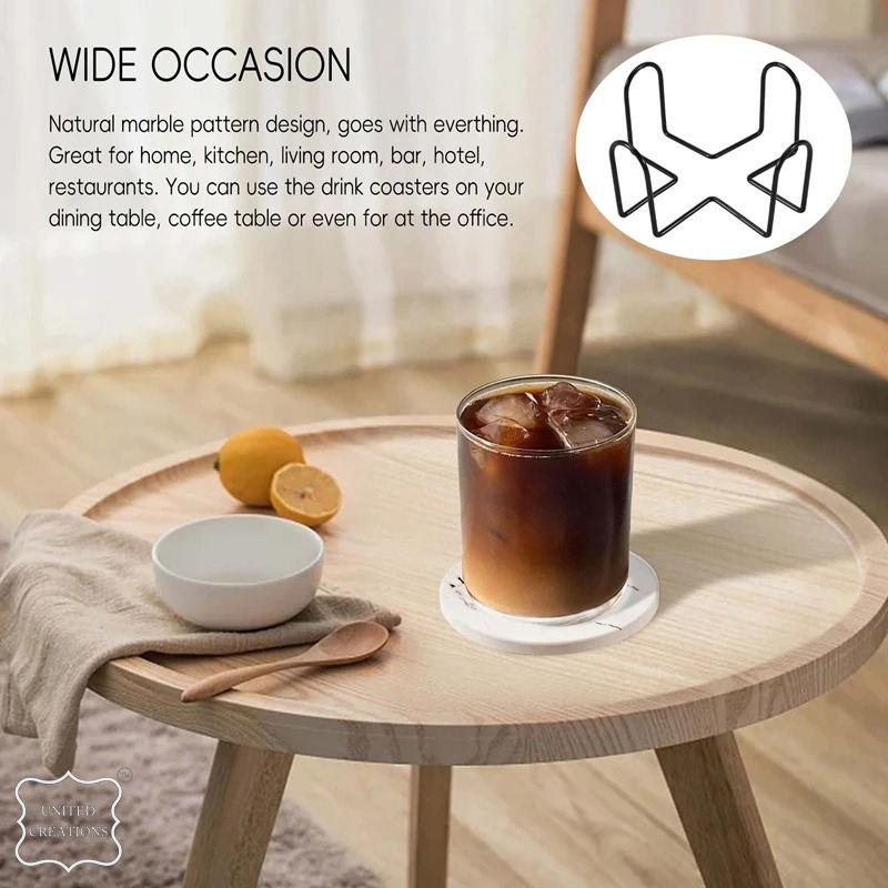 Posavasos de sublimación de cerámica de estilo mármol clásico de último diseño, tamaño personalizado con fondo de corcho