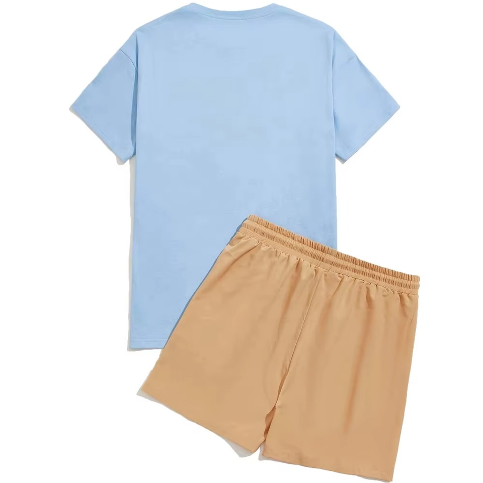 Conjunto de Verano para Hombre, Diseño Moderno, Camiseta de Cuello Redondo con Pantalones Cortos con Cordón, Atuendo Informal Ligero para Uso Diario