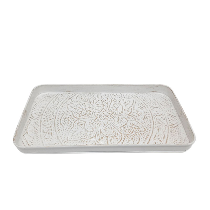 Bandeja para servir con forma de rectángulo de Metal de último diseño en Color blanco para hoteles y restaurantes, bandeja para servir comida de mesa hecha a mano