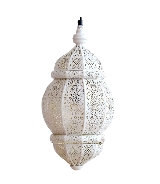Farol Colgante de Hierro de Diseño Moderno en Color Blanco, Tamaño y Forma Personalizables, Estilo Marroquí para Sala de Estar