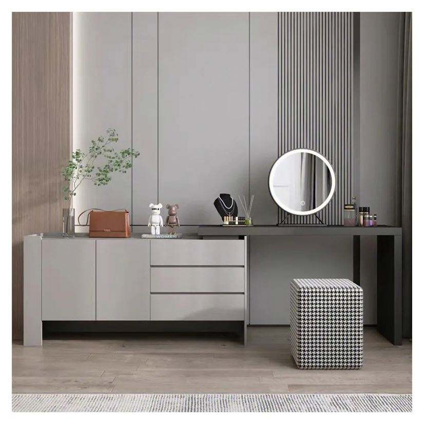 Tocador de Madera Moderno de Último Diseño con Espejo, Armario de Pared para Dormitorio, Guardarropa