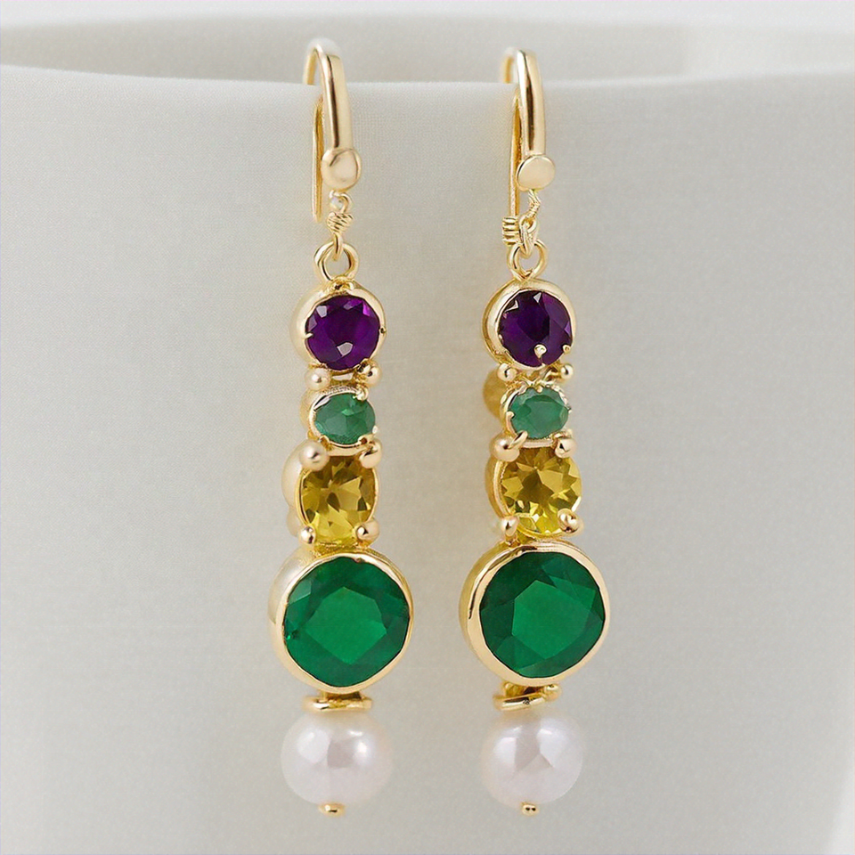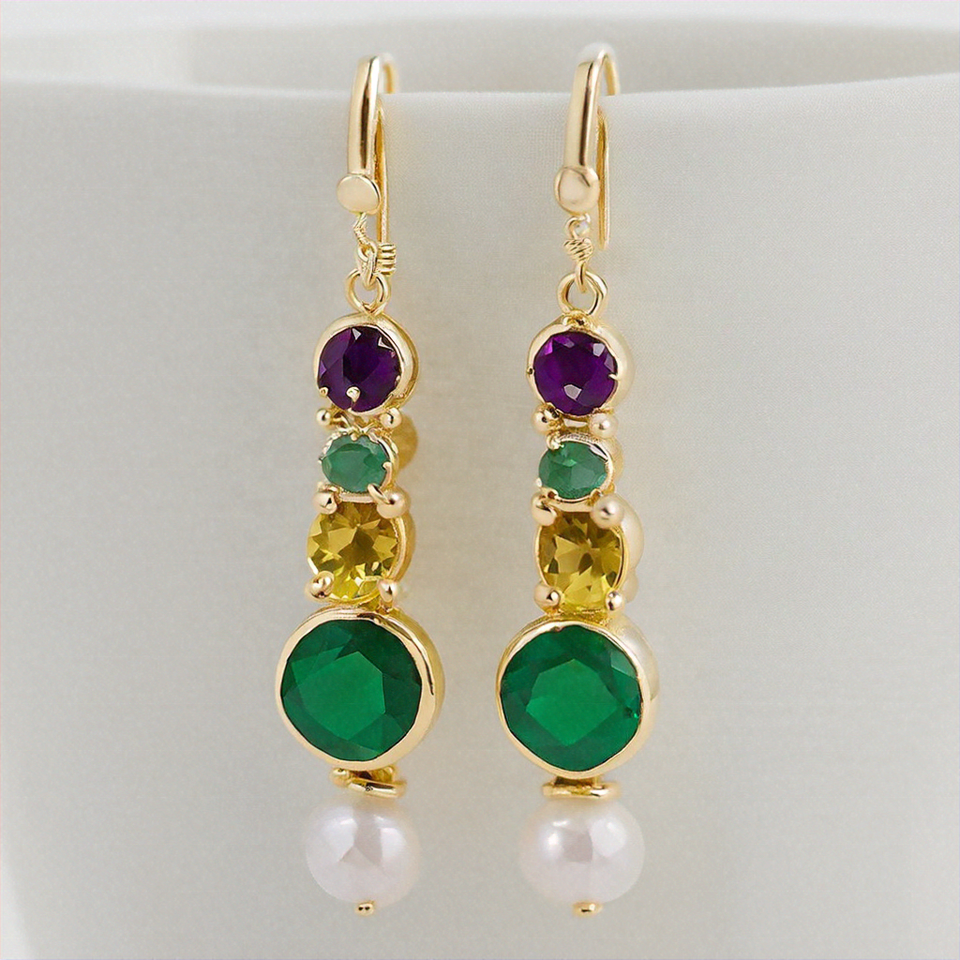 Pendientes colgantes de moda para mujeres y niñas, último diseño, joyería de múltiples piedras preciosas chapada en oro