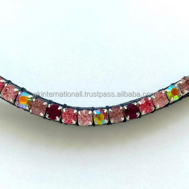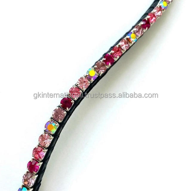 Banda de cejas de caballo de cuero ostentoso con cristales grandes multicolores de último diseño en banda de cejas de caballo en forma de onda de cuero genuino negro