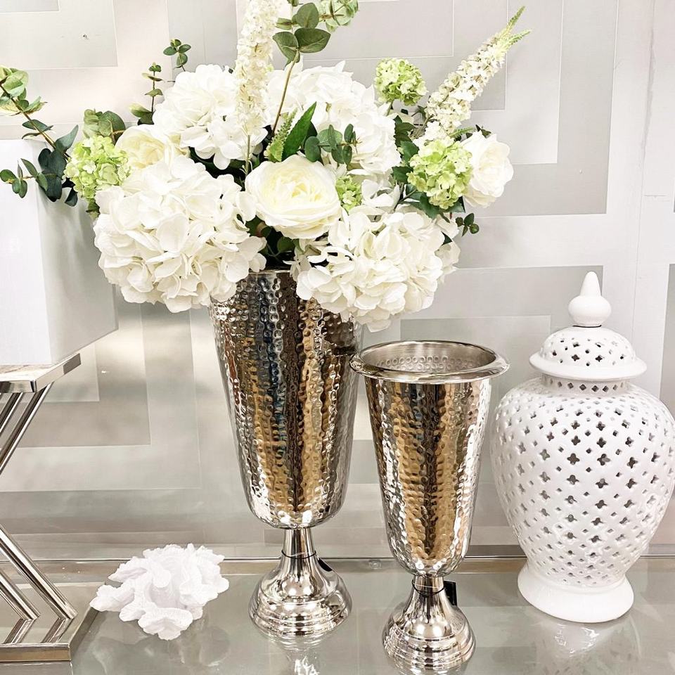 Último diseño niquelado diseño martillado jarrón para centros de mesa de boda 2024 nueva llegada centros de mesa urnas