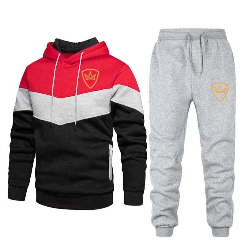 Chándal de empalme OEM para hombre, conjunto deportivo de 2 piezas, sudadera y pantalones, ropa para correr, otoño e invierno, 2021