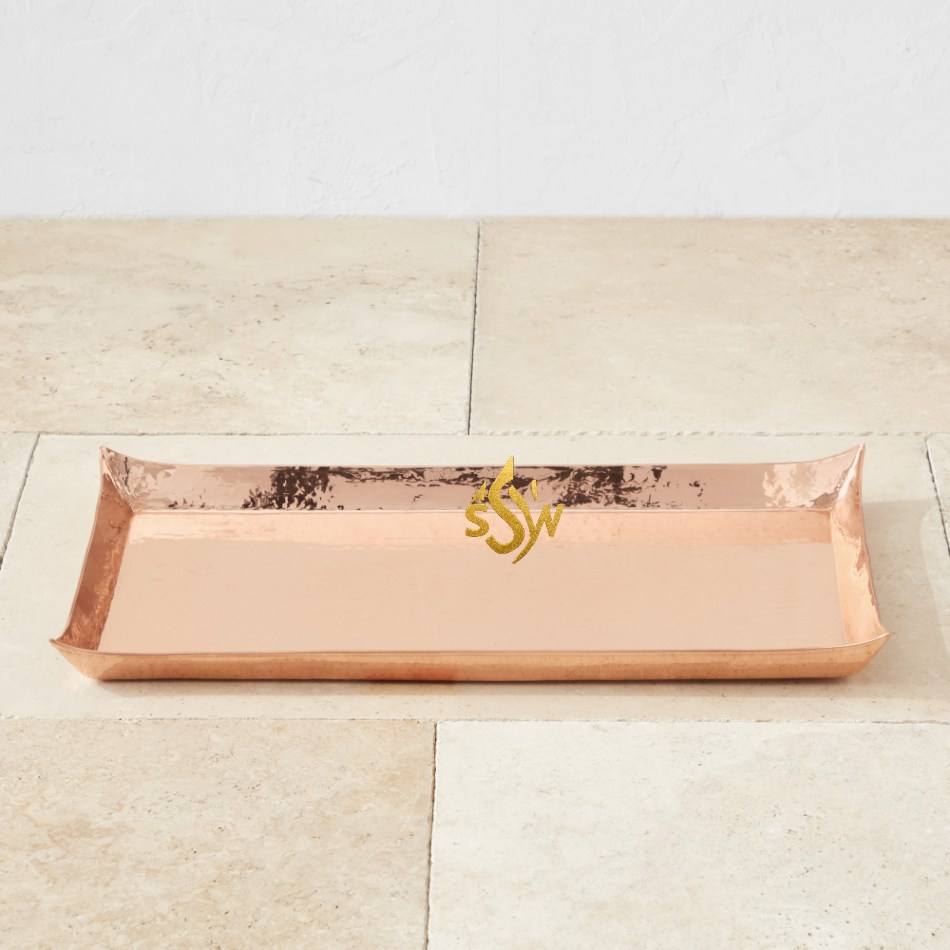 Bandeja de servicio de cobre decorativa para habitación de último diseño, límite hecho a mano texturizado martillado Rectangular personalizado para hogar y hoteles