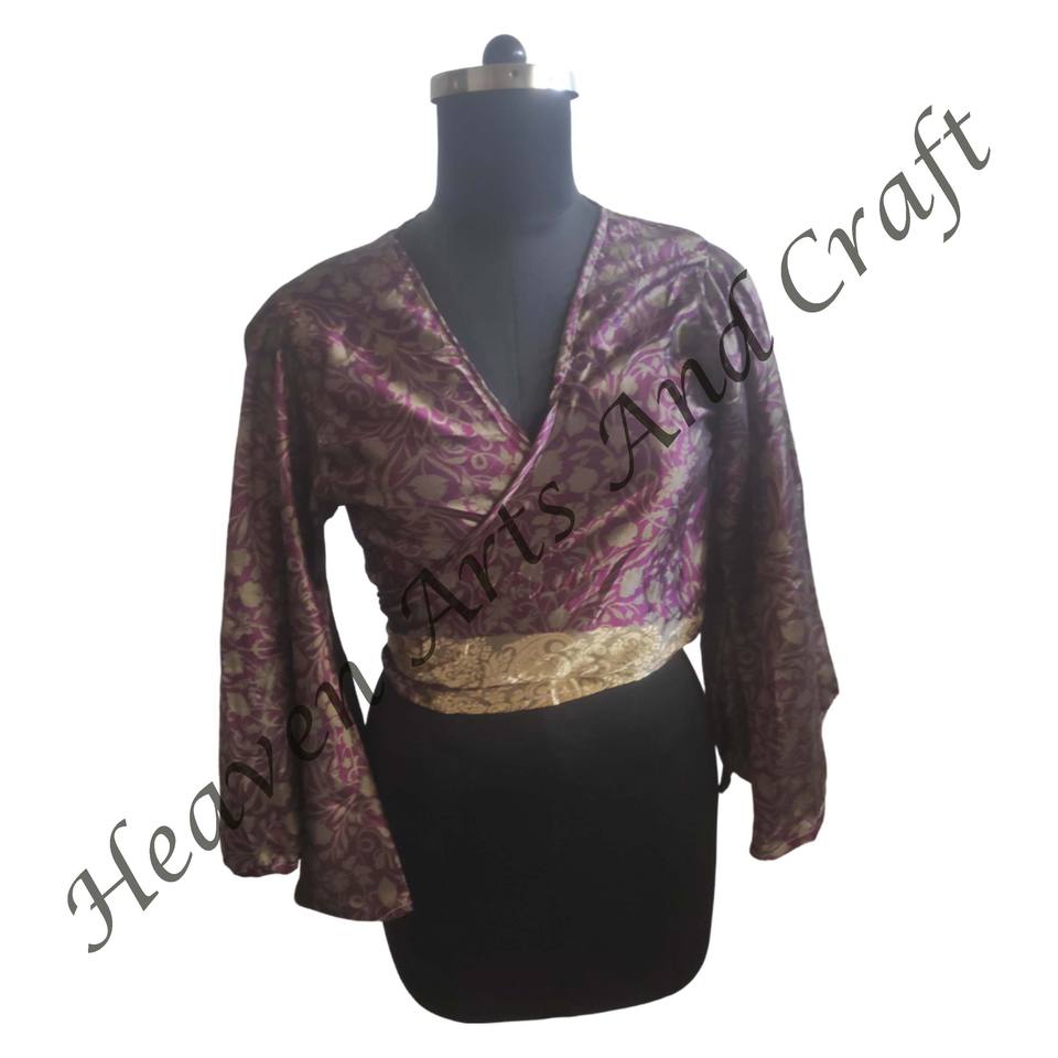 Número de Modelo:Recycle Sari Silk Tie Tops Bell Sleeves