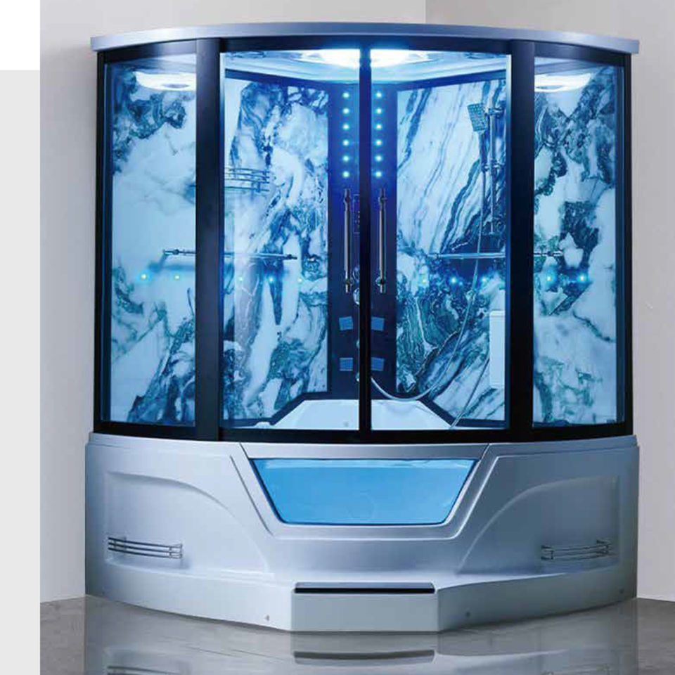 Cabina de Ducha de Vapor con Hidromasaje de Lujo Italiano y Radio FM con Placa Trasera de Losa de Último Diseño