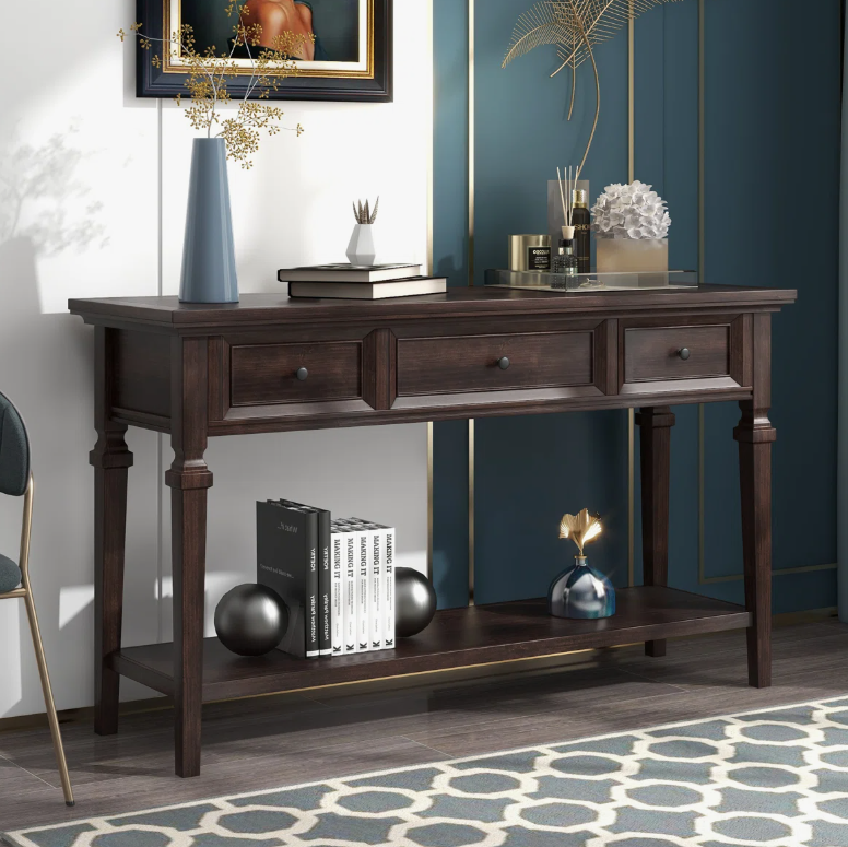Mesa Consola de Madera Maciza de Último Diseño con 3 Cajones, Estilo Industrial, Almacenamiento para Sala de Estar/Apartamento