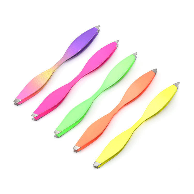 Pinzas de extensión de pestañas no magnéticas de acero inoxidable de último diseño, pinzas para cejas con punta inclinada, producto de buena calidad